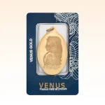 شمش طلا ۱۸ عیار ونوس با طرح سوئیسی محصولی مناسب برای سرمایهگذاری مطمئن و بلندمدت است که در وزنهای متنوع از ۰.۲۵ گرم تا ۲۰ گرم عرضه میشود. این محصول با کد T1582 از اتحادیه طلا تهران، با بستهبندی پلمب ارائه میشود. این محصول شامل هولوگرام امنیتی و ضمانت اصالت کالا است. شمشهای ونوس معمولاً با طراحیهای مدرن و جذاب ارائه میشوند. این برند به استفاده از طرحهای متنوع و جدید، مانند الهههای زیبایی و نمادهای هنری خاص معروف است. این محصول دارای ضمانت اصالت کالا می باشد.