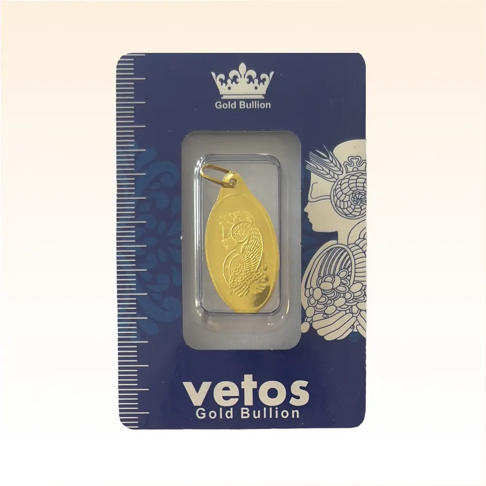 شمش طلای ۱۸ عیار ملکه وتوس (بیضی) وزن 0.300 گرم