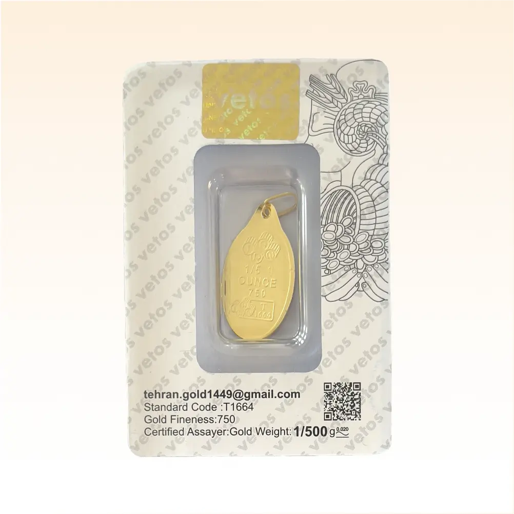 شمش طلا ۱۸ عیار وتوس با طرح سیمرغ محصولی مناسب برای سرمایهگذاری مطمئن و بلندمدت است که در وزنهای ۰.۱ و ۰.۲ گرم عرضه میشود. این محصول با کد T99 از اتحادیه طلا تهران، با بستهبندی پلمب ارائه میشود. این محصول شامل هولوگرام امنیتی و ضمانت اصالت کالا است. این محصول علاوه بر ضمانت اصالت کالا، شامل شرایط بازخرید نیز میشود. (شرایط بازخرید را در صفحه توضیحات مطالعه کنید.)